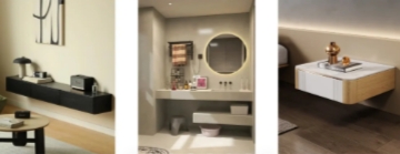 懸浮式柜體下方留空可以有更方便的使用功能,比如收納柜下方放置掃地機器人;玄關柜下方收納常穿的鞋子;浴室柜下方留空避免水汽入侵等,功能性與實用性兼?zhèn)洹?br /> 4.增添氛圍感