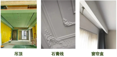 吊頂:通過一層假天花飾面板,把頂面的相關(guān)專業(yè)管道都隱藏起來的裝飾措施,為了保證空間裝飾的美觀性而存在的,F(xiàn)在比較常見的有石膏吊頂和集成吊頂。