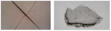 ■鋪貼瓷磚未留縫或縫隙過細(xì);瓷磚粘結(jié)劑批刮不均勻;瓷磚鋪貼后未用力按壓瓷磚或者用力不均,排氣不充分,沒有形成有效粘貼。