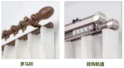 ■蓋羅馬桿:一根直桿上串掛起窗簾,適合在單一平面上的直型窗戶,不適用于L型或U型窗戶