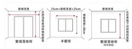 落地簾一般離地高度為3-5cm,半截簾需窗臺下延伸15-20cm,為防止漏光一般需拖臺1cm。